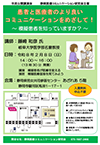 | ■ 2019/04/23 | 静岡医療コミュニケーション研究会(SMC)20周年記念講演会 「患者と医療者のかけ橋をめざして〜模擬患者ってなんだろう〜」 日時:2019 年6 月30日(日) 13:30〜15:3013:00開場 場所:城東保健福祉エリア保健福祉複合棟3階研修室 ※ 詳細リーフレットはこちらよりご覧になれます。 |